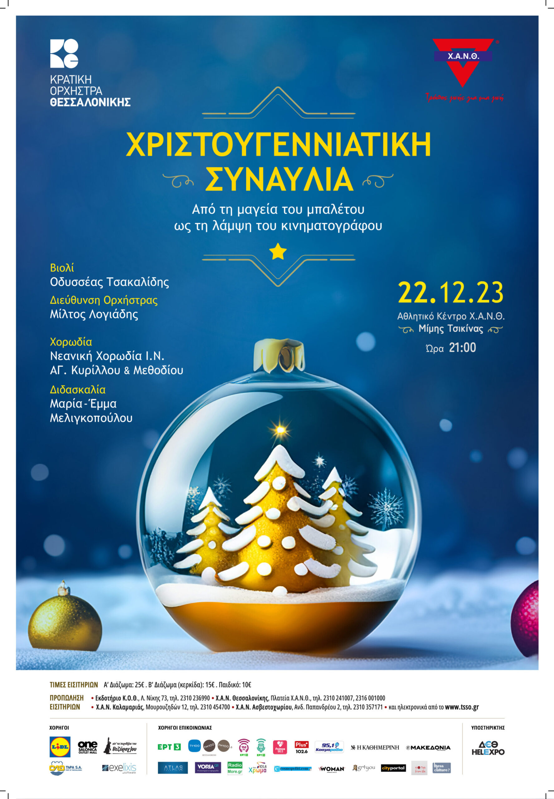 Την ίδια μέρα (20/12, 21.00) στο Μέγαρο Μουσικής Θεσσαλονίκης (Μ2) θα παρουσιαστεί η μουσική βραδιά «Βαλς in Red» σε συνεργασία με τη Συμφωνική Ορχήστρα του Δήμου Θεσσαλονίκης.