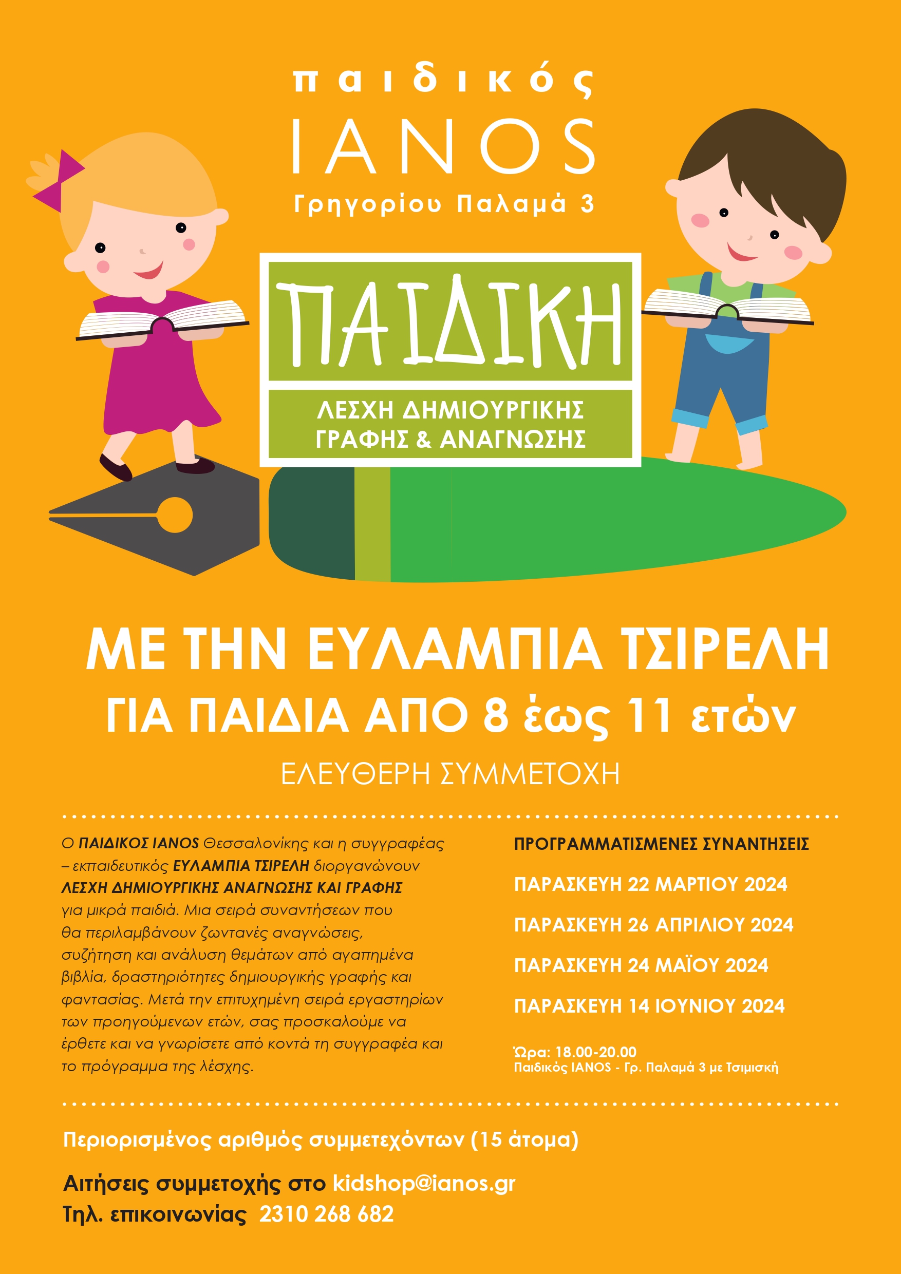 Αιτήσεις συμμετοχής στο kidshop@ianos.gr | Τηλ. επικοινωνίας 2310 268682
