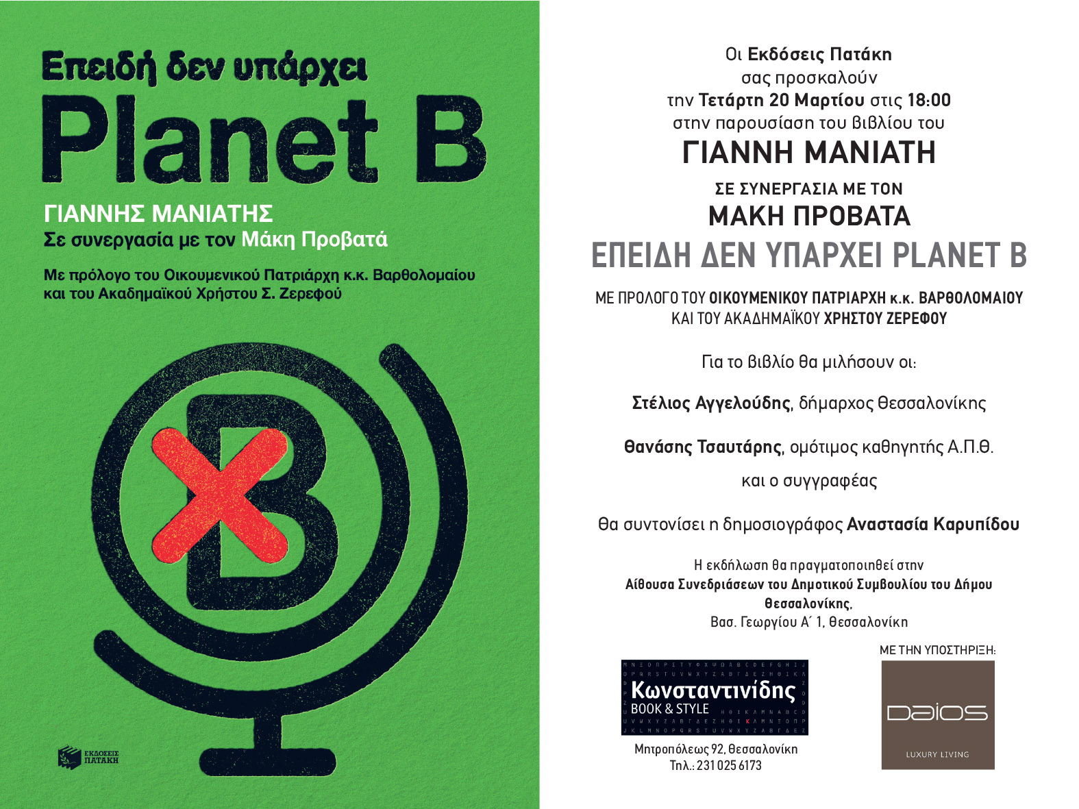 Παρουσίαση βιβλίου – Επειδή δεν υπάρχει Planet B | Αίθουσα Συνεδριάσεων Δημοτικού Συμβουλίου Δήμου Θεσσαλονίκης