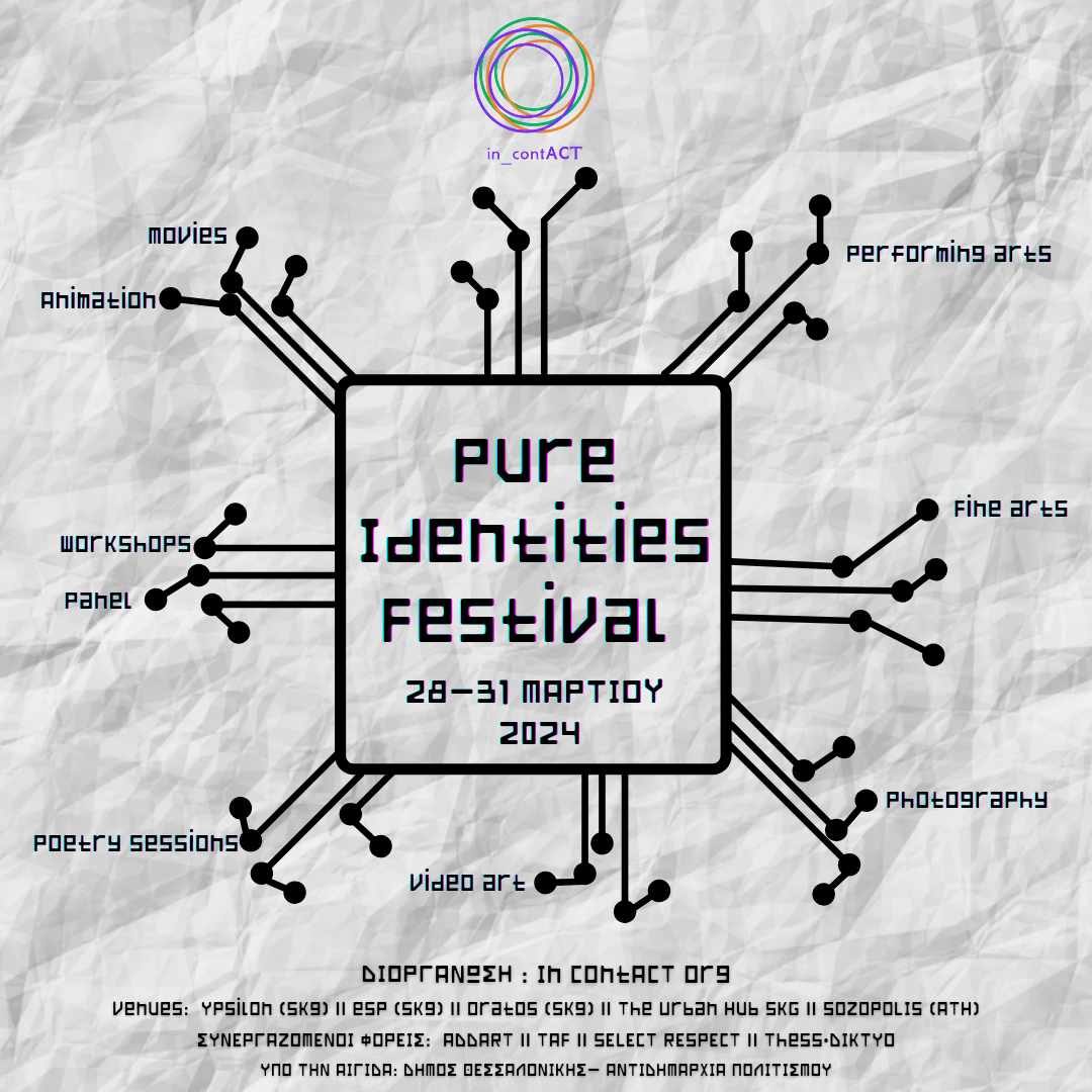 Το Pure Identities Festival- The Joy of Authenticity θέτει επί τάπητος την αναζήτηση και προβολή καλλιτεχνικών εκφράσεων απαλλαγμένων από κάθε είδους δεύτερη σκέψη που μπορεί να αλλοιώσει το τελικό αποτέλεσμα. Έχοντας ως ζητούμενο την ουσία της αυθεντικότητας, το φεστιβάλ ενθαρρύνει τους καλλιτέχνες,-ιδες, -α να εμβαθύνουν στις μοναδικές τους προοπτικές, επιτρέποντας στη δημιουργικότητά τους να “αποτυπωθεί” χωρίς περιορισμούς.