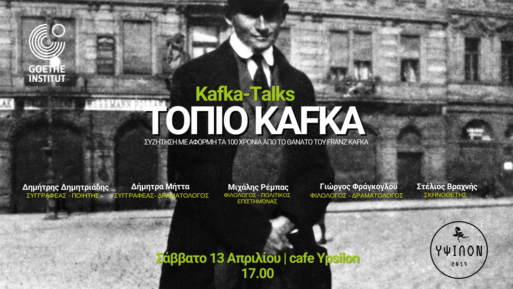 Το Goethe-Institut Thessaloniki με αφορμή την επέτειο των 100 χρόνων από το θάνατο του Franz Kafka (Kafka-Jahr), διοργανώνει μια σειρά εκδηλώσεων με το γενικό τίτλο “Kafka-Talks”, με ομιλίες- συζητήσεις πάνω στο έργο του σπουδαίου μοντερνιστή συγγραφέα του 20ου αιώνα.