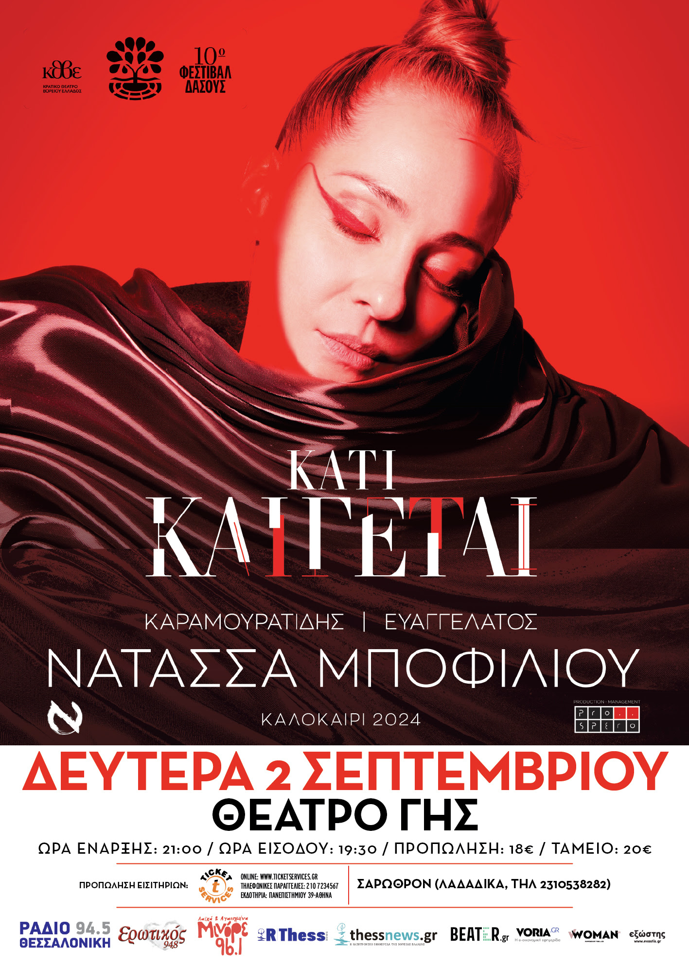Μια Νέα Παράσταση. Μια Νέα Εποχή. Έπειτα από τις εκρηκτικές χειμερινές εμφανίσεις της στη σκηνή του Vox στην Αθήνα και τις μεγάλες συγκινήσεις που προσέφερε στο πολυπληθές κοινό της, η Νατάσσα Μποφίλιου έρχεται με φόρα στο καλοκαίρι, μπαίνει σε νέα φλεγόμενη τροχιά, παρουσιάζει με ενθουσιασμό την νέα παράσταση που έφτιαξαν με τον Θέμη Καραμουρατίδη και τον Γεράσιμο Ευαγγελάτο και μοιράζεται για πρώτη φορά ζωντανά τα ολοκαίνουργια τραγούδια του δίσκου “Κάτι Καίγεται” που έχουν ήδη ξεχωρίσει και αγαπηθεί.