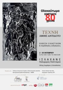 Η έκθεση είναι επετειακή για τα 80χρονα από το Ολοκαύτωμα του Χορτιάτη. Πρόκειται για ένα σπουδαίο εικαστικό γεγονός, με έργα ζωγραφικής, χαρακτικής, φωτογραφίας, εγκαταστάσεις, video, performance τα οποία θα εκτίθενται στον Πολυχώρο Πολιτισμού Ισλαχανέ στη Θεσσαλονίκη.