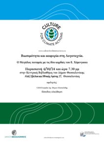 Θα μιλήσουν, ο CEO/Founder της ΑΜΚΕ Culture for Climate Actions, Δρ. Βύρων Πισσαλίδης. Η είσοδος είναι ελεύθερη. Στους φοιτητές/σπουδαστές που θα παρακολουθήσουν την εκδήλωση θα δοθεί βεβαίωση παρακολούθησης.