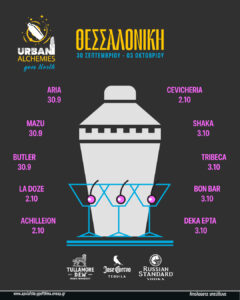 Kατά την διάρκεια των Urban Alchemies parties, το κοινό θα έχει την ευκαιρία να δοκιμάσει μοναδικά cocktails τα οποία θα επιμεληθoύν bartenders από χώρες της Ευρώπης, όπως η Ισπανία και η Σουηδία, αλλά και εμβληματικά bars της Ελλάδας, με στόχο να «κερδίσουν» και τους πιο απαιτητικούς! Save the dates!