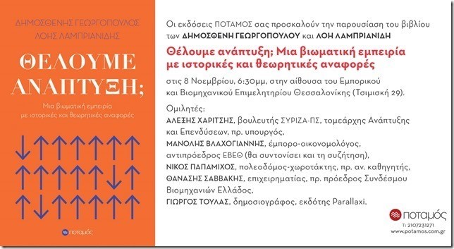 Παρουσίαση του βιβλίου των Δημοσθένη Γεωργόπουλου & Λόη Λαμπριανίδη: Θέλουμε ανάπτυξη; Μια βιωματική εμπειρία με ιστορικές και θεωρητικές αναφορές.