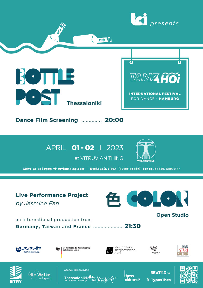 Με τον τίτλο “Bottle Post” σαν αναφορά στις Χανσεατικές ρίζες του φεστιβάλ στο Αμβούργο, η συνεργατική δράση του Διεθνούς Φεστιβάλ Χορού TANZAHOi είναι προέκταση του ετήσιου προγράμματος ταινιών χορού και παραστατικών τεχνών, με έμφαση στην ψηφιακή τεχνολογία. Σε συνεργασία με το φεστιβάλ TCI στη Θεσσαλονίκη, το TANZAHOi θα παρουσιάσει ταινίες χορού επιλεγμένες από το πιο πρόσφατο πρόγραμμά του, δίνοντας στους καλλιτέχνες την ευκαιρία να συνδεθούν με το κοινό, αλλά και επαγγελματίες του χώρου, στην πόλη.