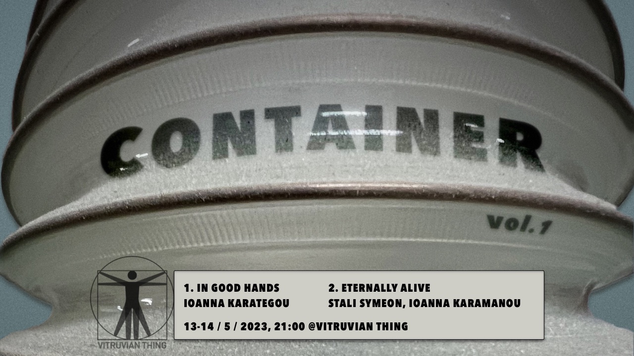 Το Vitruvian Thing παρουσιάζει την πρώτη εκδοχή μιας νέας σειράς εκδηλώσεων, με τον τίτλο “Container”. Η πρωτοβουλία στοχεύει στο να ομαδοποιήσει έργα μικρής διάρκειας, ώστε να παρουσιαστούν πιο εύκολα σε ζωντανό κοινό. Τα έργα καθαυτά, ενόσω ανεξάρτητα μεταξύ τους, θα μοιραστούν τη σκηνή του Vitruvian Thing, η οποία θα αποτελέσει γόνιμο έδαφος προς μελλοντικές μετενέργειες.