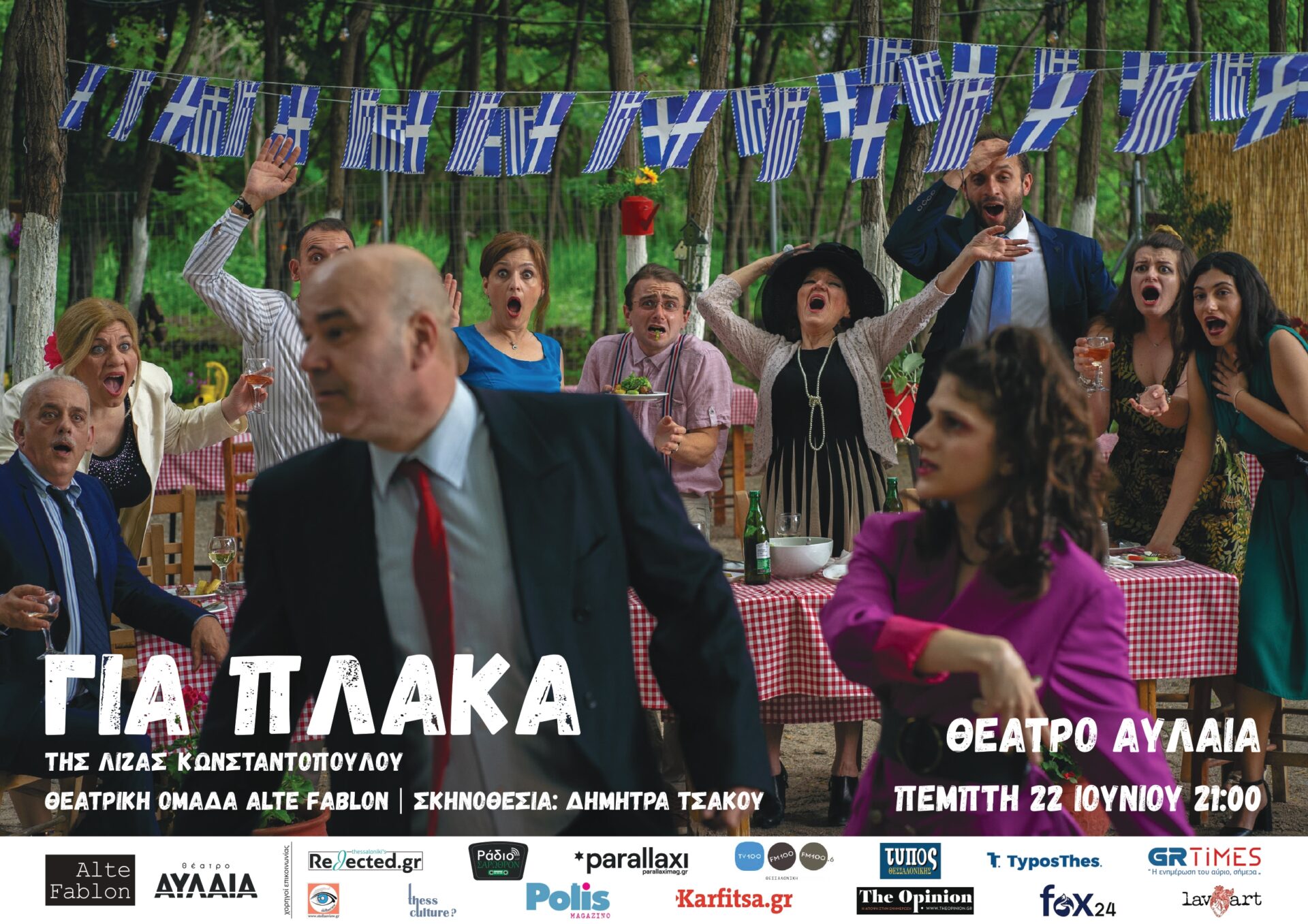 Η θεατρική ομάδα του « Alte Fablon » παρουσιάζει στο Θέατρο Αυλαία για μια μόνο παράσταση, το βραβευμένο θεατρικό έργο της Λίζας Κωνσταντοπούλου, «ΓΙΑ ΠΛΑΚΑ» σε σκηνοθεσία Δήμητρας Τσάκου.