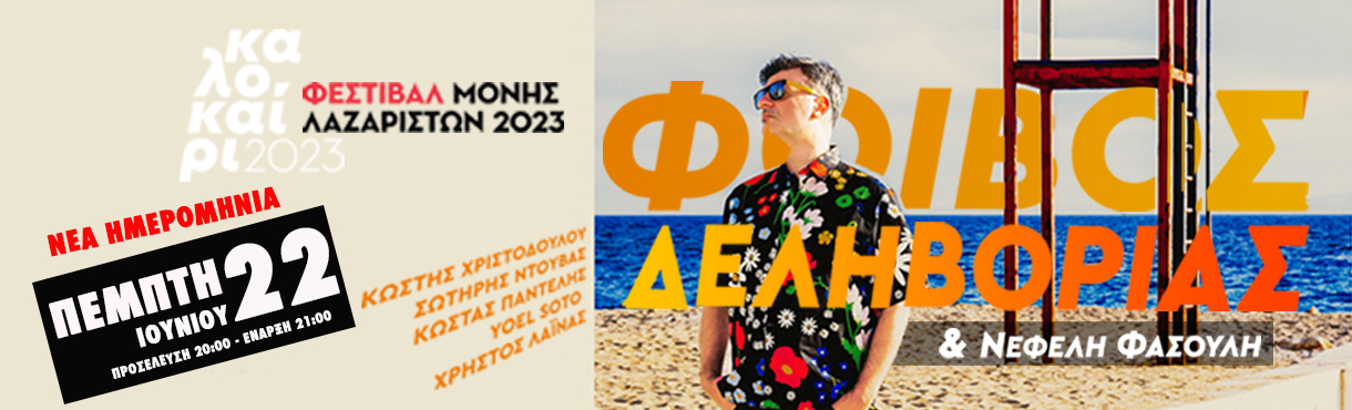 Μετά από την αναβολή λόγω κακοκαιρίας και του τριήμερου εθνικού πένθους, το Φεστιβάλ Μονής Λαζαριστών 2023, φιλοξενεί τον Φοίβο Δεληβοριά με τους συνεργάτες του, την Πέμπτη 22 Ιουνίου, στην παρουσίαση της νέας του παράστασης Μαζί του η Νεφέλη Φασούλη.