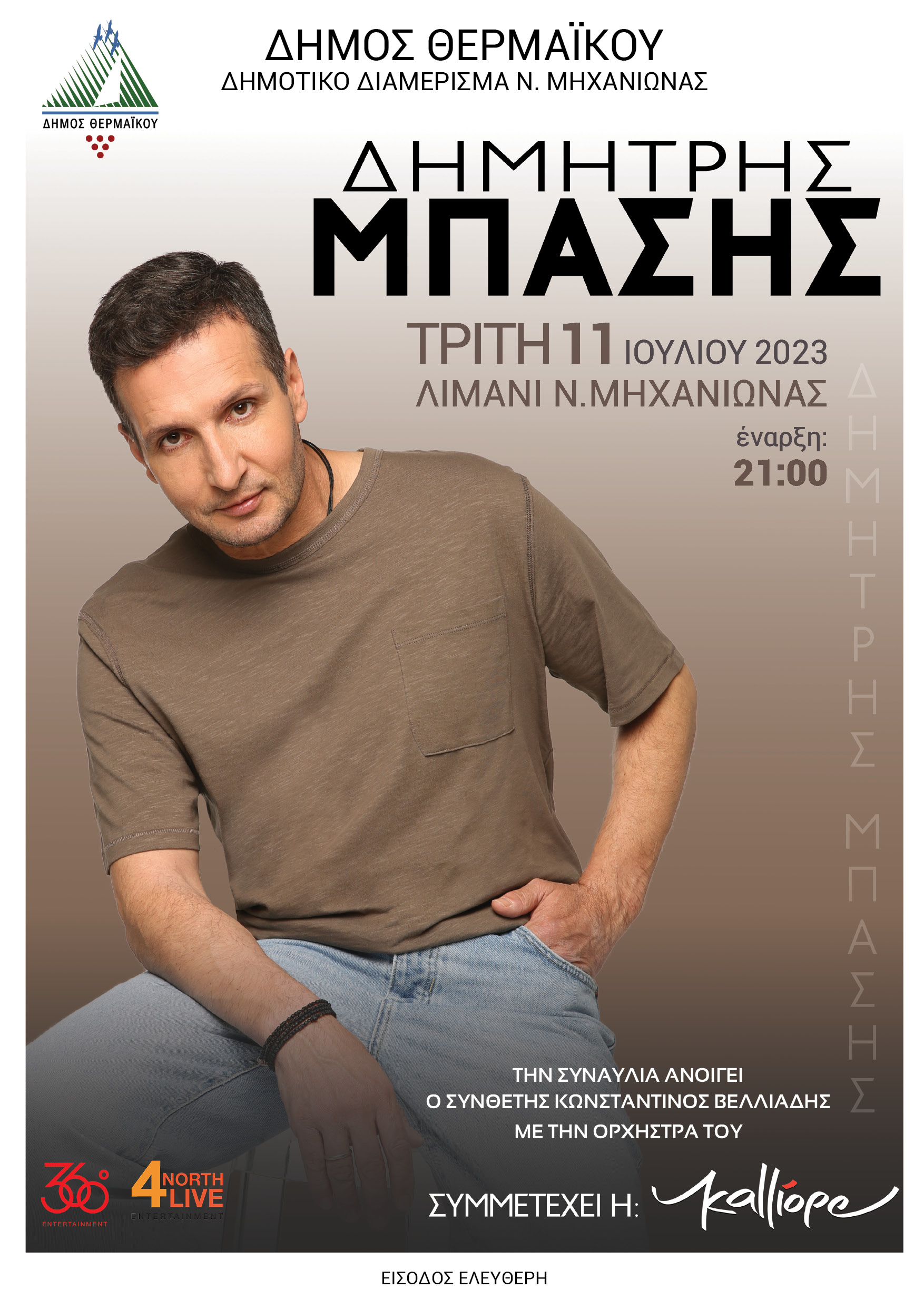 ΤΡΙΤΗ 11 ΙΟΥΛΙΟΥ: ΣΥΝΑΥΛΙΑ ΜΕ ΤΟΝ ΔΗΜΗΤΡΗ ΜΠΑΣΗ Ο Δημήτρης Μπάσης για ένα μοναδικό live την Τρίτη 11 Ιουλίου, στο Λιμάνι Νέας Μηχανιώνας! Συμμετέχει η KALLIOPE / Την συναυλία ανοίγει ο συνθέτης Κωνσταντίνος Βελλιάδης με την ορχήστρα του.