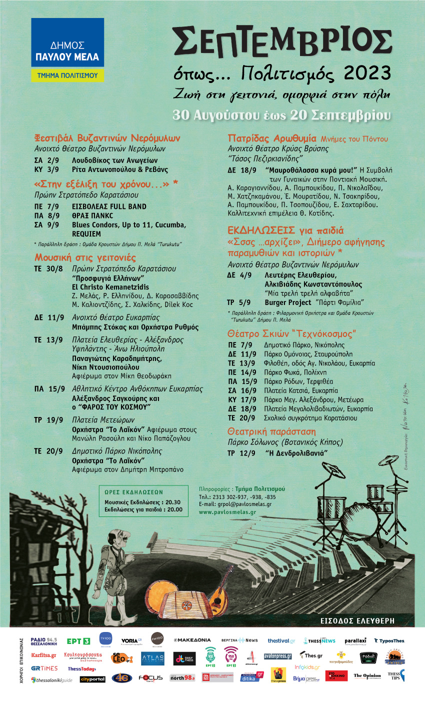 Τρίτη 12 Σεπτεμβρίου – Λαϊκή βραδιά με τμήματα μουσικής Ωδείου Θέρμης – Υπαίθριο Cine Thermais – 21.00