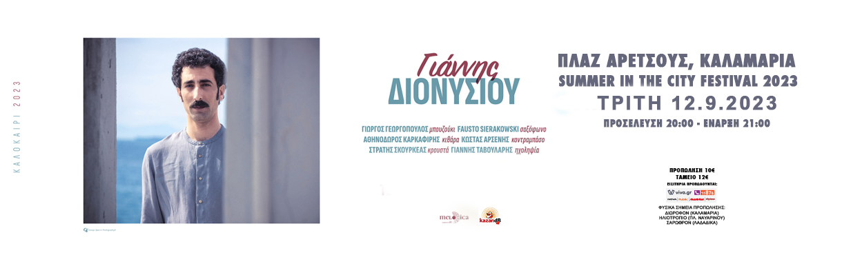 Ο Γιάννης Διονυσίου επιστρέφει στη Θεσσαλονίκη για μια καλοκαιρινή συναυλία στην Πλαζ Αρετσούς στην Καλαμαριά, συμμετέχοντας στο μουσικό φεστιβάλ: Summer In Thes City Festival 2023.