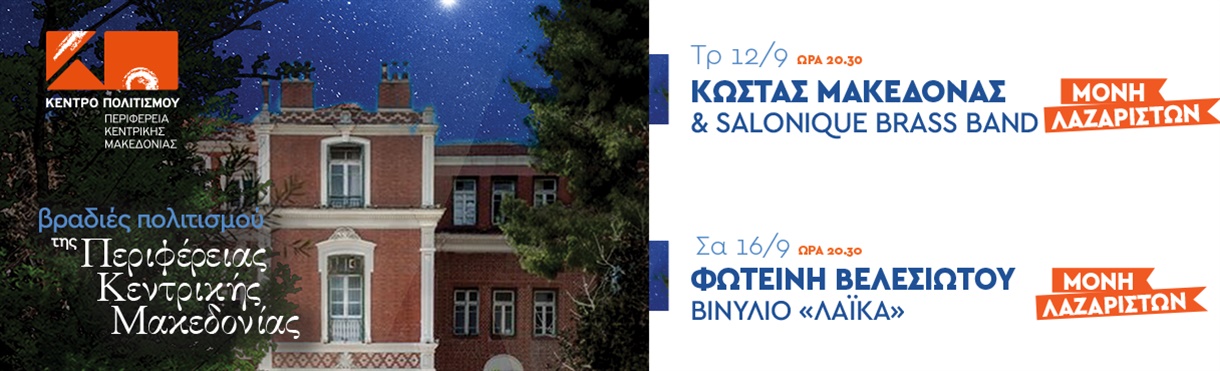 Ο Κώστας Μακεδόνας συμπράττει με το μουσικό σχήμα Salonique Brass Band τον Σεπτέμβριο στον αύλειο χώρο της Μονής Λαζαριστών στη Θεσσαλονίκη, για καλό σκοπό. Τη συναυλία διοργανώνει το Κέντρο Πολιτισμού της Περιφέρειας Κεντρικής Μακεδονίας. Όλα τα έσοδα θα ενισχύσουν τον Σύλλογο Συνδρόμου Down Ελλάδος.