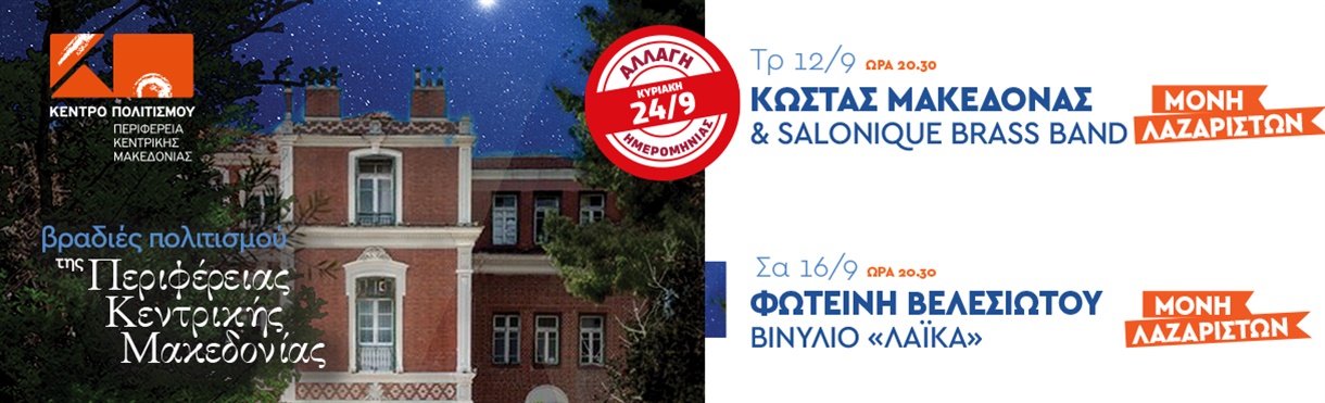 Tην Τετάρτη 20 Σεπτεμβρίου στον ανοιχτό χώρο της Μονής Λαζαριστών Θεσσαλονίκης!