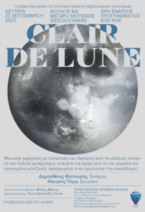 Δευτέρα 25 Σεπτεμβρίου 2023, ώρα 8.00μ.μ. Πολυκεντρικό Μουσείο Αιγών – Κεντρικό Μουσειακό Κτίριο (αίθριο)