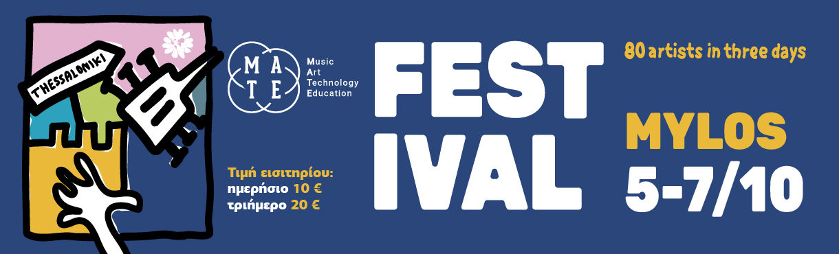 Το «M.A.T.E.» Festival, η 3ημερη γιορτή για την μουσική, την τέχνη, την τεχνολογία και την εκπαίδευση, έρχεται στη Θεσσαλονίκη τον Οκτώβριο 2023, στις 3 κλειστές, συναυλιακές, σκηνές του Mylos πλαισιωμένο από πλήθος εκδηλώσεων. 80 καλλιτέχνες θα ανέβουν στις σκηνές μέσα σε 3 μέρες, ενώνοντας τις ακτές του Ατλαντικού με της Μεσογείου. Παράλληλες δράσεις του M.A.T.E. Festival Thessaloniki: show cases, workshops, ομιλίες και παρουσιάσεις, προβολές μουσικών ντοκιμαντέρ, συζητήσεις σε «στρογγυλά τραπέζια».«Music-Art-Technology-Education» στη Θεσσαλονίκη.