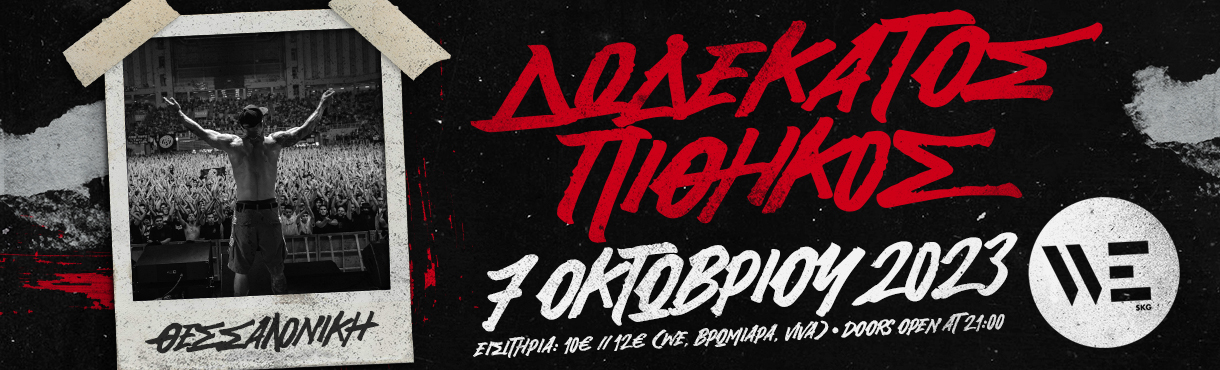 Αναγνωρισμένος ως ένας από τους πιο παραγωγικούς και πρωτοπόρους καλλιτέχνες του ελληνικού hip-hop o 12ος ΠΙΘΗΚΟΣ έρχεται για μια μοναδική συναυλία στο σπίτι του στην Θεσσαλονίκη. Σάββατο 7 Οκτωβρίου όλοι οι δρόμοι οδηγούν στον πολυχώρο WE.