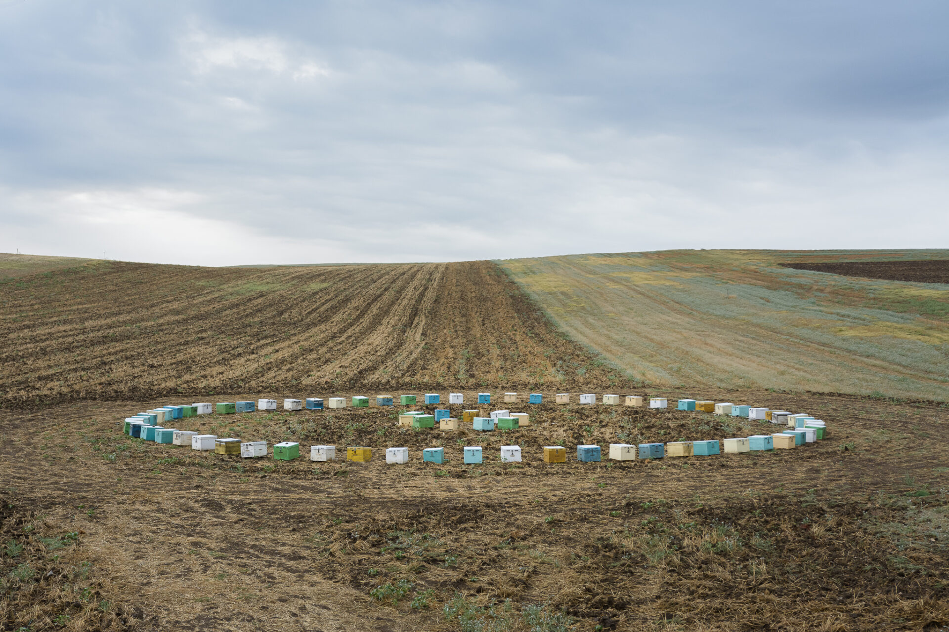 Η σειρά «Ιστορίες του κάμπου» (2017-2023) του Βασίλη Νεμπεγλεριώτη, εστιάζει στο θεσσαλικό κάμπο, τον δεύτερο μεγαλύτερο σιτοβολώνα της χώρας, που έχει αποτελέσει πηγή ευμάρειας όσο και εστία ανισότητας, όπως υποσημειώνει διακριτικά η φωτογραφία από το μνημείο του Κιλελέρ. Παιδί αγροτικής οικογένειας, ο Νεμπεγλεριώτης εξετάζει εδώ τη σύγχρονη συνθήκη του κάμπου: την αδιατάρακτη απεραντοσύνη του επίπεδου τοπίου, τη σχετική ερημία του από τα μελίσσια ανθρώπων που το καλλιεργούσαν από τότε που η αγροτική εργασία μηχανοποιήθηκε, τους αγρούς που γίνονται κυψέλες παραγωγής ηλιακής ενέργειας, τους μετανάστες που συγκροτούν τη νέα εργατική δύναμη της ελληνικής γης, τα ίχνη των ανθρώπων που επιβάλλουν το δικό τους γραμμικό κανόνα στην κυκλική περιοδικότητα της φύσης.