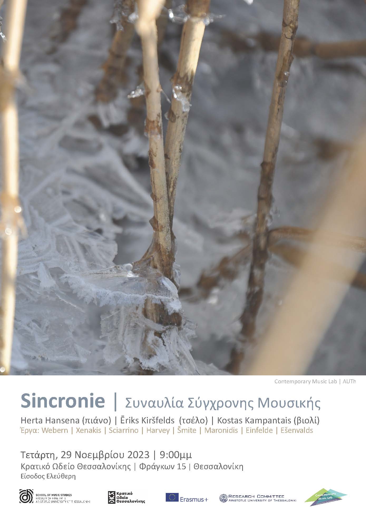 Τραγούδια θα ερμηνεύσουν μουσικοί από το Δημοτικό Ωδείο Θέρμης και το τμήμα Λαϊκης Μουσικής με μαέστρο τον Παύλο Παπαδόπουλο