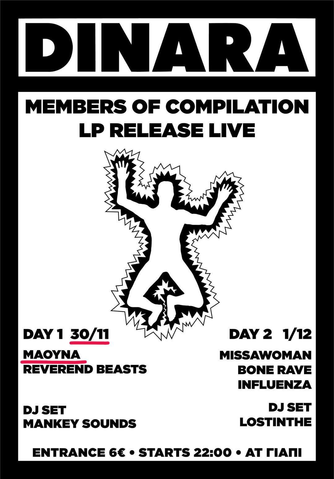 ΠΛΗΡΟΦΟΡΙΕΣ: Χώρος: Eightball Club, Πίνδου 1, Λαδάδικα, Θεσσαλονίκη | Ημερομηνίες & ώρες παραστάσεων: 20 Νοεμβρίου – 5 Δεκεμβρίου 2023, κάθε Δευτέρα και Τρίτη στις 21:15 | Διάρκεια παράστασης: 75’ (χωρίς διάλειμμα) | Τιμές εισιτηρίων: 13€ σε τραπέζι | 10€ σε stand ή στο bar | Ισχύουν ατέλειες, με σειρά προτεραιότητας και εφόσον υπάρχουν διαθέσιμες θέσεις | *Η τιμή του εισιτηρίου δεν περιλαμβάνει ποτό. | Προπώληση εισιτηρίων: Μέσω more.com (https://www.more.com/theater/ympy-tyrranos-mia-athyrostomi-komodia/) Προσφορά έως τις 10 Νοεμβρίου: Όλα τα εισιτήρια στην τιμή των 9€ | Πληροφορίες / Κρατήσεις θέσεων: 6986 818 052, 6955 501 509, 2313 253 799