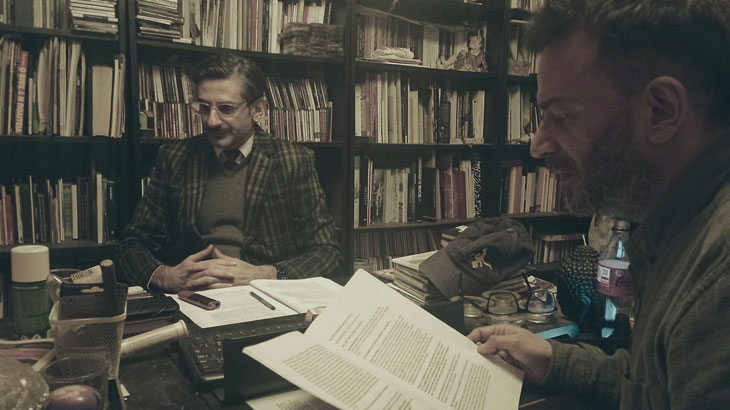 Μαζί του επί σκηνής ο Αντώνης Μποσκοΐτης ως ο interviewer του ποιητή.
