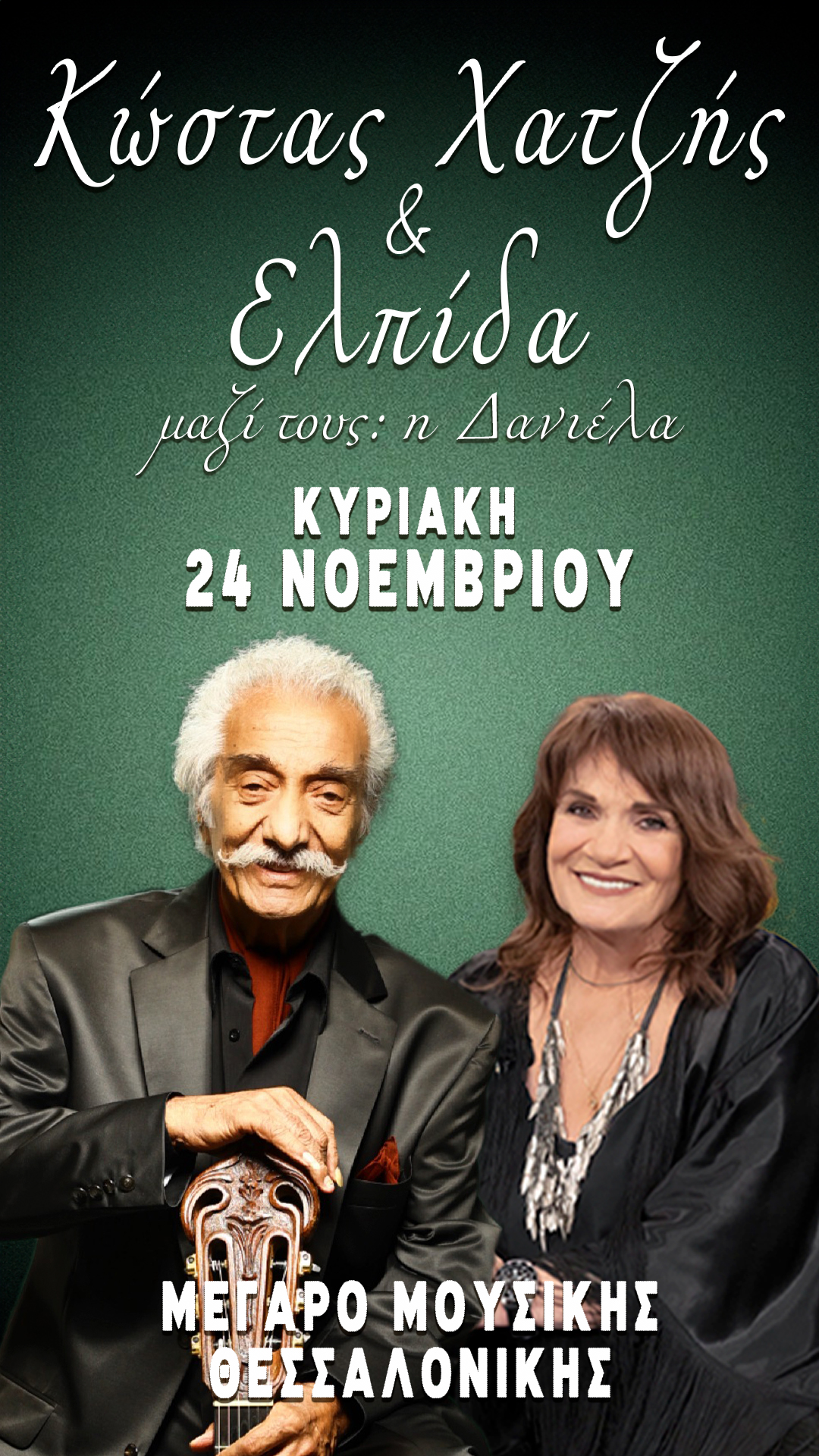 Μετά από τις εξαιρετικά επιτυχημένες συναυλίες τους στο Ηρώδειο και το Θέατρο Παλλάς ο Κώστας Χατζής και η Ελπίδα ενώνουν ξανά τις φωνές τους , την Κυριακή 24 Νοεμβρίου για μία ξεχωριστή εμφάνιση στο Μέγαρο Μουσικής Θεσσαλονίκης.