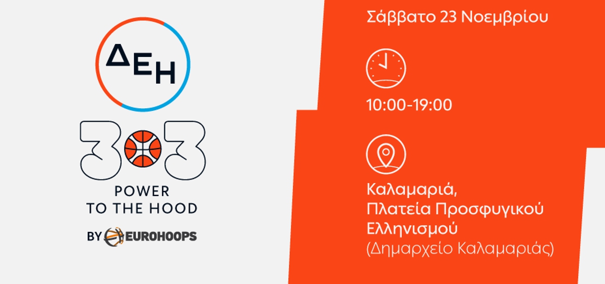 Σε ένα μεγάλο, υπαίθριο γήπεδο μπάσκετ μεταμορφώνεται η Πλατεία Προσφυγικού Ελληνισμού, καθώς ο Δήμος Καλαμαριάς συμμετέχει στην πανελλήνια γιορτή του αθλητισμού, ΔΕΗ 3×3 POWER TO THE HOOD by Eurohoops σε μια μέρα γεμάτη άθληση, ψυχαγωγία και πολλές εκπλήξεις.