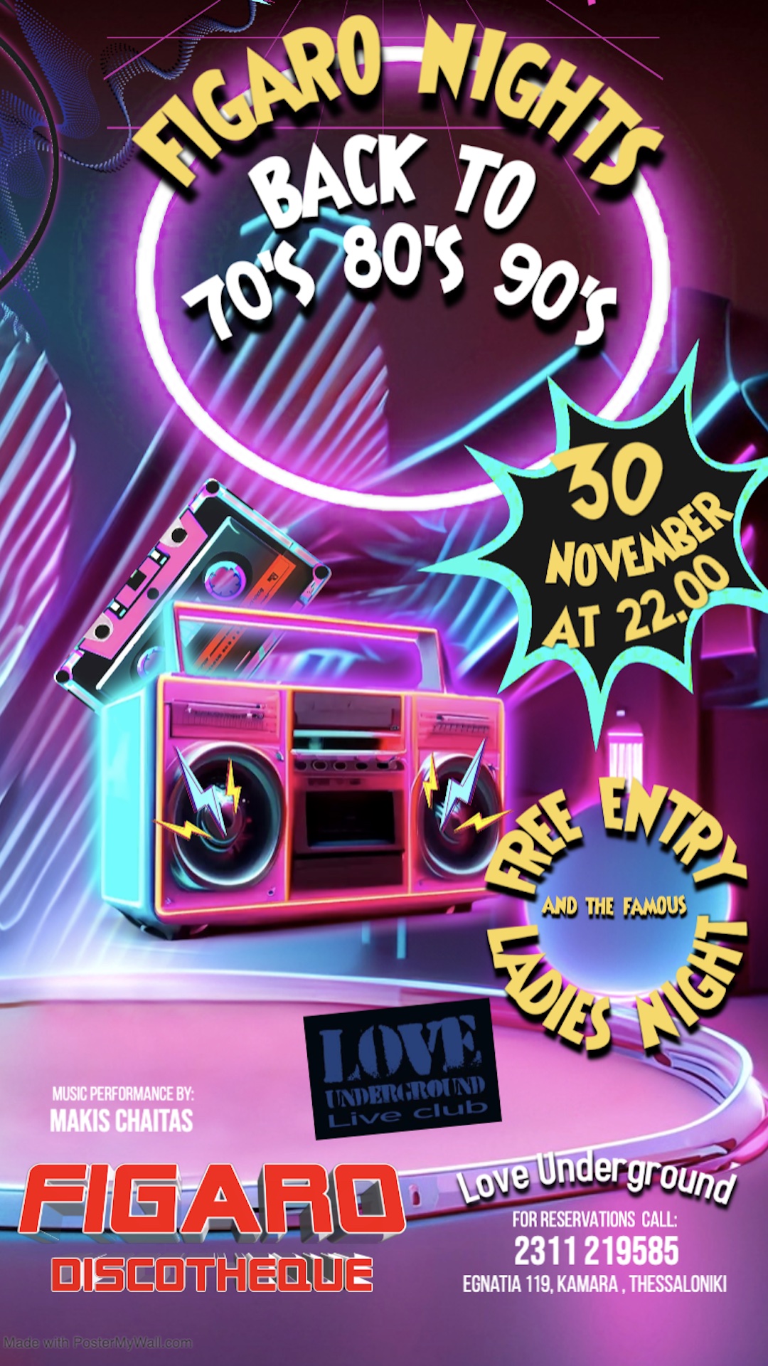 Η αγαπημένη Discotheque FIGARO, γνωστή για τις θρυλικές νύχτες της στις δεκαετίες του 70, 80 και 90, κάνει δυναμικό comeback το Σάββατο 30 Νοεμβρίου στο Love Underground Live Club. Ελάτε να ζήσουμε ξανά τη μαγεία των δεκαετιών που διαμόρφωσαν την κουλτούρα της διασκέδασης.