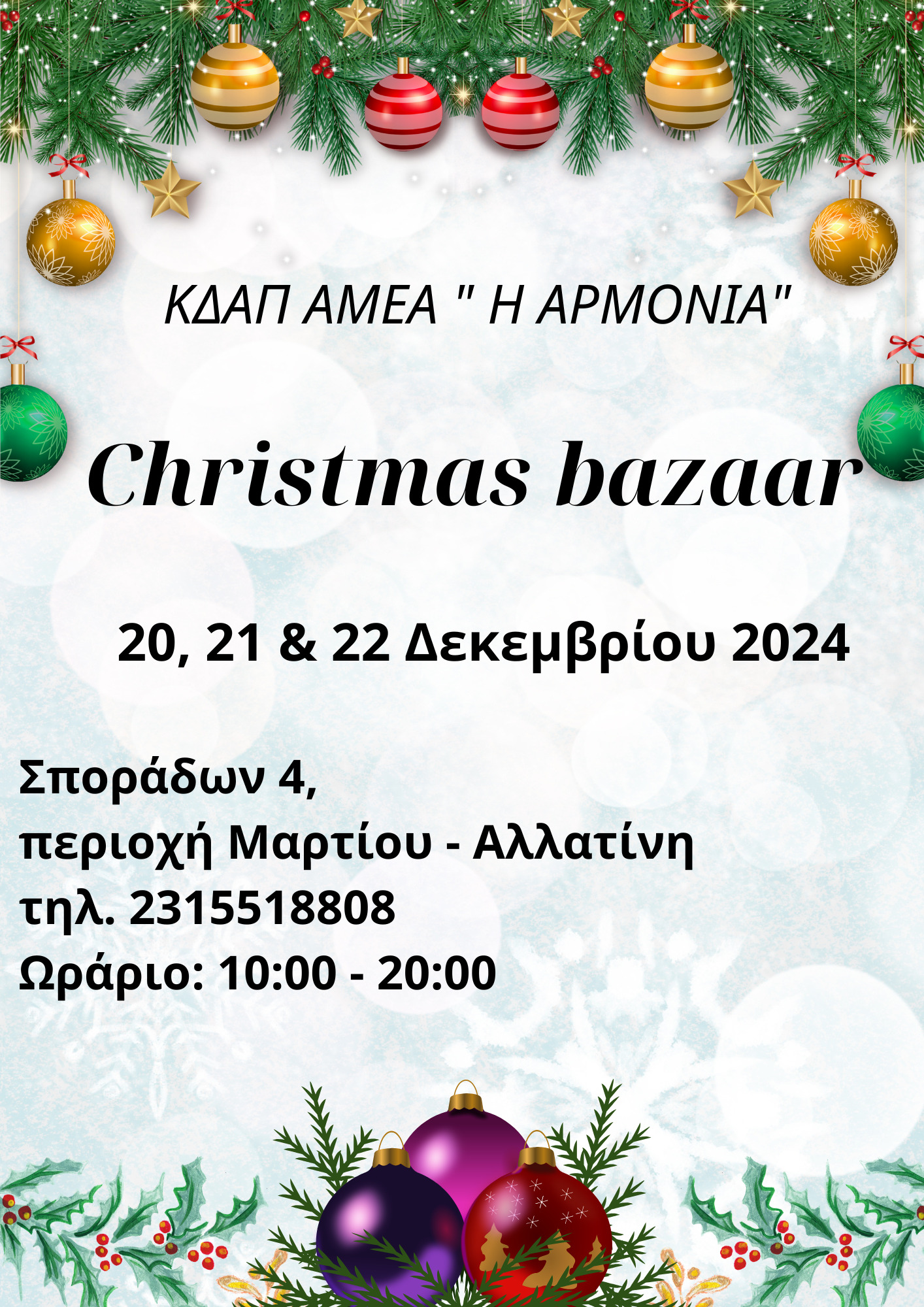 Christmas Bazaar | ΚΔΑΠ ΑμεΑ “Η Αρμονία”