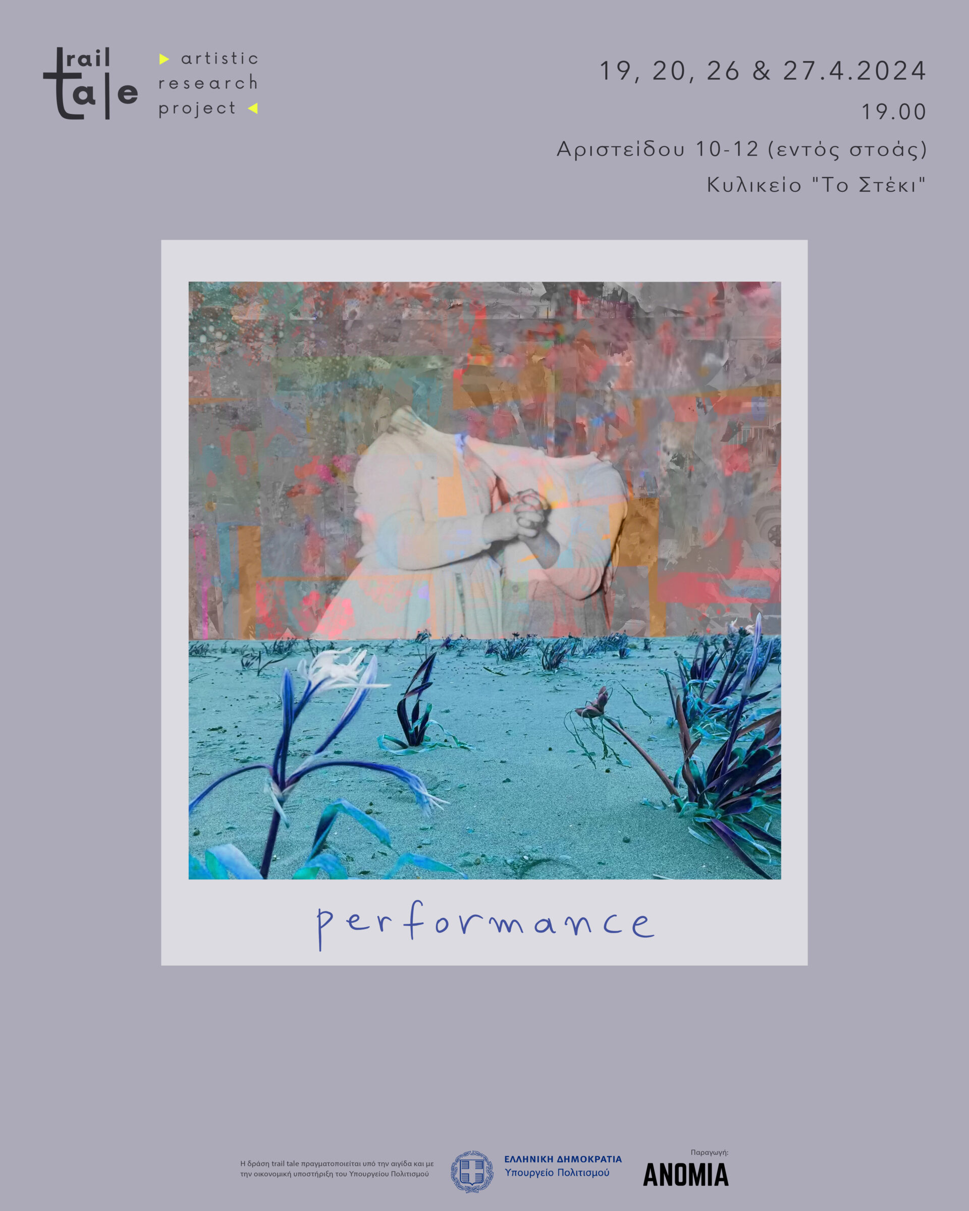 Η ANOMIA σας προσκαλεί στην performance του ερευνητικού, εκπαιδευτικού και καλλιτεχνικού προγράμματος “trail tale” στις 19, 20, 26 και 27 Απριλίου, ώρα 19:00 στην Αριστείδου 10-12, κυλικείο “Το Στέκι” (εντός στοάς).