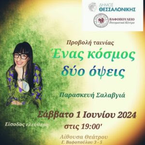 Το Βαφοπούλειο Πνευματικό Κέντρο διοργανώνει το Σάββατο 1 Ιουνίου 2024 εκδήλωση στη διάρκεια τη οποίας θα προβληθεί η ταινία-ντοκιμαντέρ με τίτλο «Ένας κόσμος, δύο όψεις» της Παρασκευής Σαλαβγιά, στο θέατρο του (Γ. Βαφόπουλου 5), στις 19:00. Πρόκειται για ένα κοινωνικό αυτοβιογραφικό ντοκιμαντέρ, της Παρασκευής Σαλαβγιά, η οποία γεννημένη πρόωρα με εγκεφαλική παράλυση, αριστερή ημιπληγία λόγω πρόωρου τοκετού, έδωσε το δικό της αγώνα. Το ντοκιμαντέρ αποτελεί όνειρο και έμπνευση της πρωταγωνίστριας, η οποία καταθέτει τη δική της διαδρομή, την εμπειρία των επιλογών που εκείνη αξιοποίησε, προσυπογράφοντας με αυτοπεποίθηση και αισιοδοξία ένα εκκωφαντικό «τολμήστε», αλλά και ένα ηχηρό μήνυμα προς όλους για ενσυναίσθηση. Βασικός άξονας της ταινίας πέρα από τις επιλογές-προτάσεις της Παρασκευής Σαλαβγιά είναι και η ευαισθητοποίηση στο κομμάτι της λεγόμενης «αόρατης» αναπηρίας. Στο πλαίσιο της εκδήλωσης, η σεναριογράφος και πρωταγωνίστρια, Παρασκευή Σαλαβγιά θα μιλήσει για τον συμπεριληπτικό οραματισμό και κατόπιν της προβολής του ντοκιμαντέρ θα ακολουθήσει συζήτηση με το κοινό.