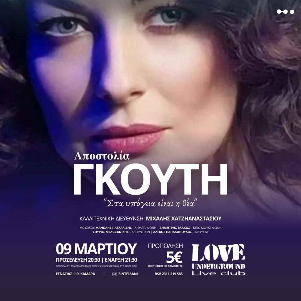 Θέατρο Αριστοτέλειον, Εθ. Αμύνης 2, Θεσσαλονίκη | Παρασκευή 07 & Σάββατο 08 Μαρτίου στις 21:30, Κυριακή 09 Μαρτίου στις 20:00 | Τιμές εισιτηρίων από 15€ | Προπώληση: Ticketservices.gr & Ταμείο Θεάτρου