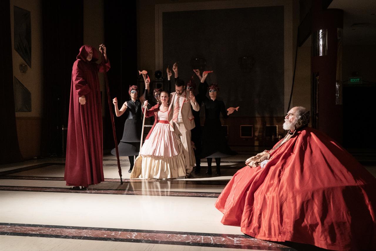 Επί σκηνής: Υρώ Λούπη(Ερατώ, Τονίνο), Ιωάννα Παγιατάκη Πηνελόπη, Ηγουμένη), Λίλιαν Παλάντζα (Εργίνη, Καλόγρια Β΄. Αντώνιος, Χριστόφορος, Μαρλέν), Πολυξένη Σπυροπούλου (Αμαλία, Επαμεινώνδας), Δανάη Σταματοπούλου (Αικατερίνη, Ελευθέριος, Καλόγρια Α΄, Γιατρός, Κωνσταντίνου.), Άννη Τσολακίδου (Εριφύλη, Τάγαρης, Κωνσταντέν), Μαρία Χατζηιωαννίδου (Ασπασία).