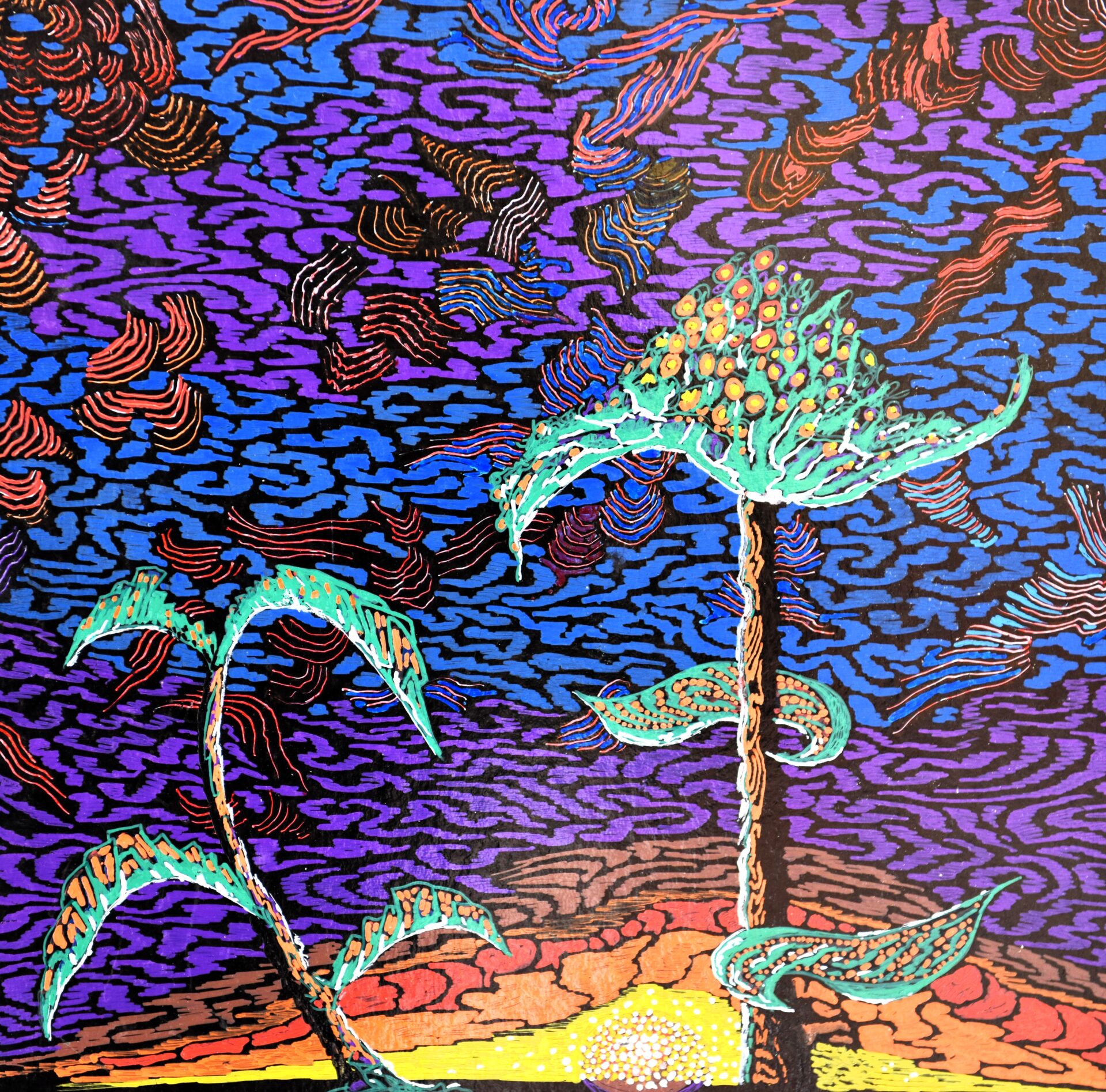”Η έκθεση θα σας ταξιδέψει σε άλλους κόσμους, θα σας περάσει μηνύματα αλληγορικά και θα νιώσετε συναισθήματα πρωτόγνωρα μέσα από την οπτική προσέγγιση του Σταύρου Κουϊμτζή! Ο εικαστικός μας μεταφέρει στον δικό του ονειρικό κόσμο όπου οι οντότητες που κατοικούν σε αυτόν είναι κυριολεκτικά διάσπαρτες. Πρόσωπα χωρίς σώματα που μοιάζουν περισσότερο με μάσκες, πολλές φορές αλληλένδετες μεταξύ τους με μονοπάτια πολύχρωμα από γεωμετρικά σχήματα, άλλοτε σε μεγαλύτερες διαστάσεις και άλλοτε σε επαναλαμβανόμενα μοτίβα με απίστευτη λεπτομέρεια, χαρακτηρίζουν τα περισσότερα από τα μεγάλα έργα του εικαστικού. Τα δέντρα, που θα μπορούσαν να είναι και έμπνευση για σκηνοθέτη ταινίας επιστημονικής φαντασίας, είναι επίσης ενδεικτικά της δουλειάς του. Τα ίδια αλλά και ο φόντος που τα πλαισιώνει είναι προϊόν και αυτά μεγάλης λεπτομέρειας με μοτίβα που θυμίζουν fractals και απαιτούν πολύωρη δουλειά και υπομονή από τον δημιουργό τους. Όλα απόκοσμα!”