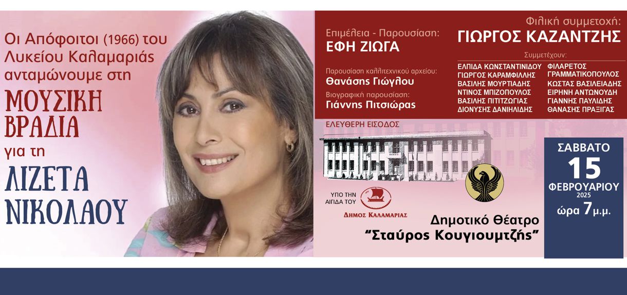 Δημοτικό Θέατρο Καλαμαριάς «Σταύρος Κουγιουμτζής» | Σάββατο 15 Φεβρουαρίου στις 19:00 | Είσοδος Ελεύθερη