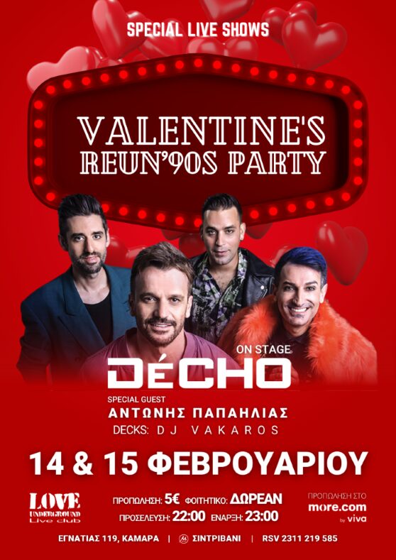 Τραγούδια που θα ακούσεις λάιβ από τους αγαπημένους σου καλλιτέχνες και ενδιαφέρουσες θεατρικές παραστάσεις που θα σε κάνουν να ξεχάσεις πως δίπλα σου κάθονται χεράκι-χεράκι ερωτευμένα ζευγαράκια. Και ποιος ξέρει; Ίσως σε κάποια σκηνή της πόλης να βρεις και εσύ τον έρωτα της ζωής σου.