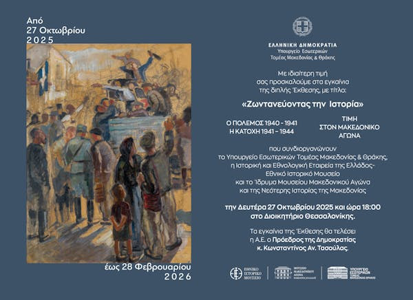 Μια διπλή έκθεση με τίτλο «Ζωντανεύοντας την Ιστορία», που συνδιοργανώνει το Υπουργείο Εσωτερικών – Μακεδονίας & Θράκης με το Ιστορικό και Εθνολογικό Μουσείο Ελλάδος και το Μουσείο του Μακεδονικού Αγώνα Θεσσαλονίκης.