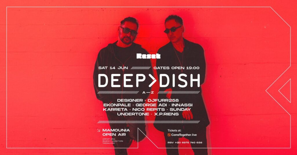 14 Ιουνίου 2025 — οι Deep Dish επιστρέφουν στη Θεσσαλονίκη, και μαζί τους μια ολόκληρη εποχή.