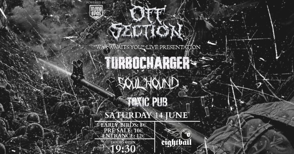Το ιστορικό 8Ball ετοιμάζονται να λεηλατήσουν για πρώτη φορά οι Off Section το Σάββατο 14 Ιουνίου παρουσιάζοντας το debut LP τους «War Awaits You» με σύμμαχους τους: Turbocharger, Soulhound και Toxic Pub.