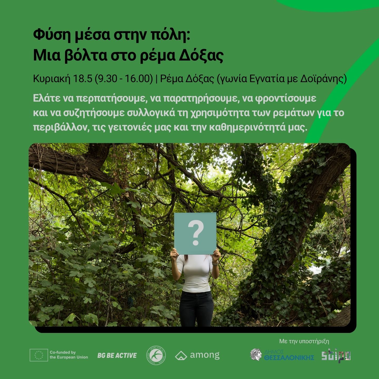 Ρέμα Δόξας, Θεσσαλονίκη, γωνία Εγνατίας με Δοϊράνης | Κυριακή 18 Μαΐου από 09:30 έως 16:00 | Δήλωση συμμετοχής εδώ: https://forms.gle/E2xjXEhzainMLHct6