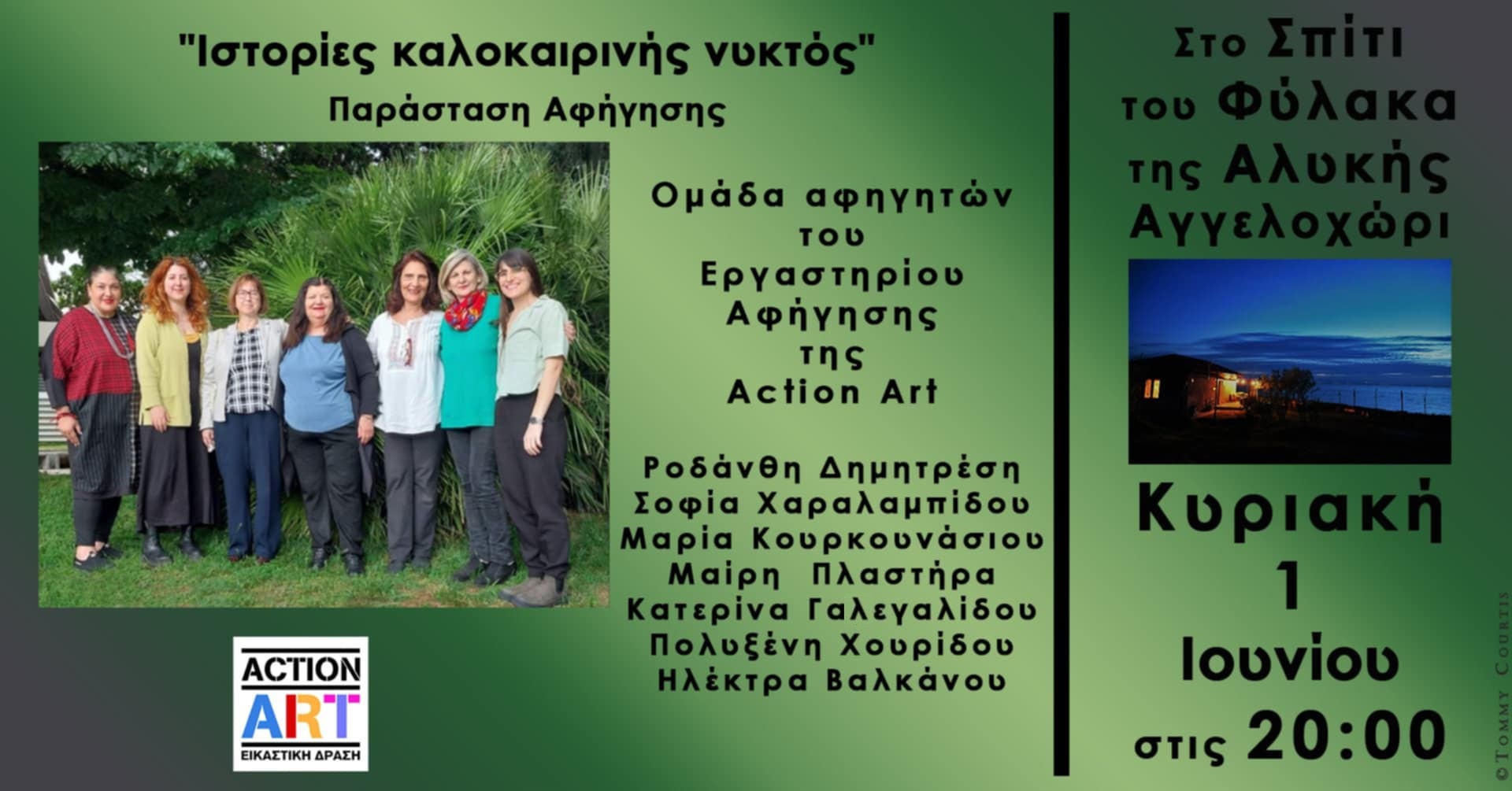 Κυριακή 1 Ιουνίου στις 20:00, παράσταση αφήγησης στο Σπίτι του Φύλακα της Αλυκής, στο Αγγελοχώρι. Για να υποδεχτούμε το καλοκαίρι!