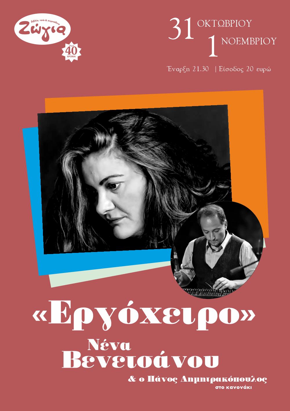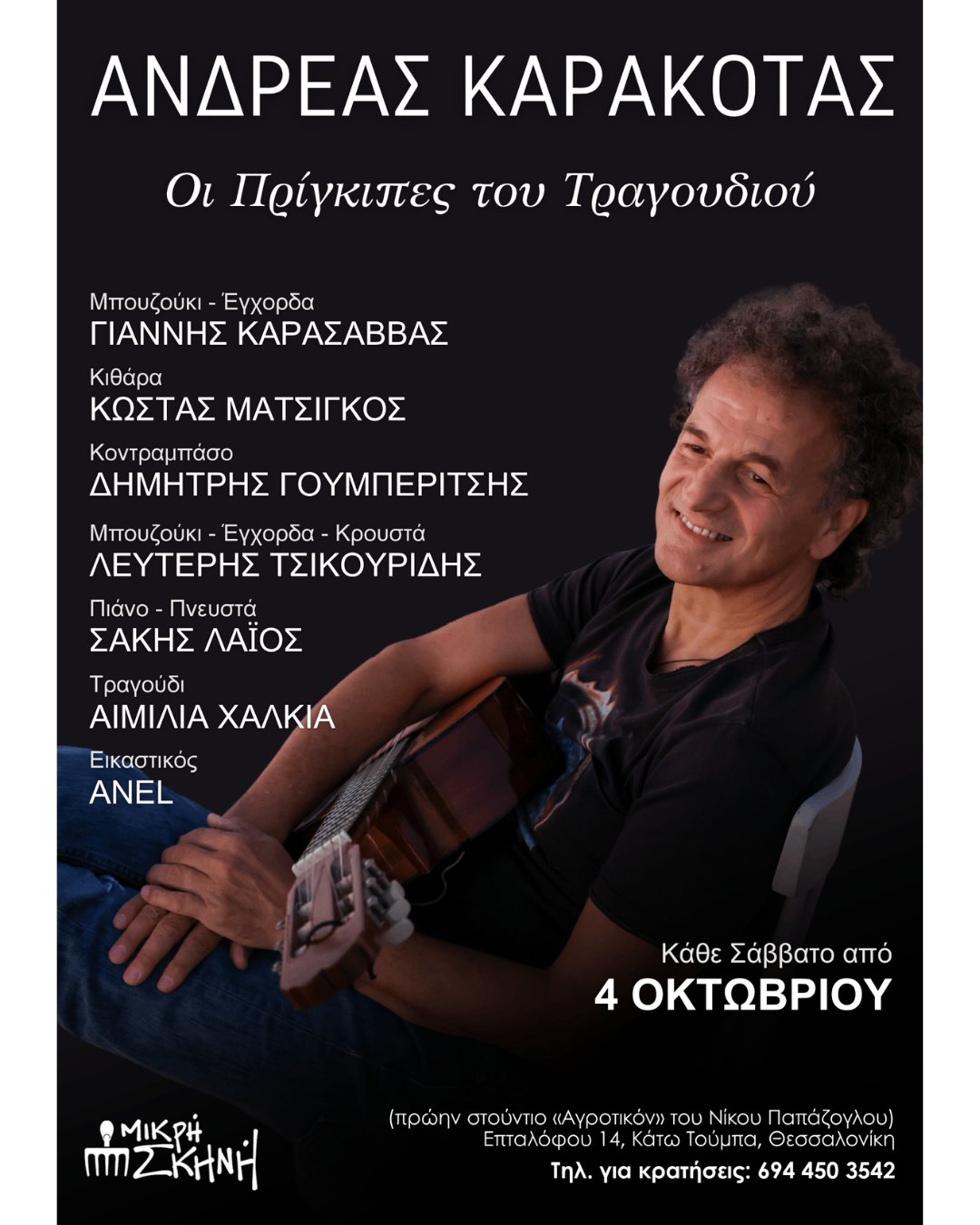*Φουαγιέ Θεάτρου Εταιρείας Μακεδονικών Σπουδών, Εθνικής Αμύνης 2, Θεσσαλονίκη | Παρασκευή 31 Οκτωβρίου στις 21:00, Σάββατο 01 Νοεμβρίου στις 18:00 & 21:00, Κυριακή 02 Νοεμβρίου στις 19:30 | Τιμές εισιτηρίων από 9€ | Προπώληση: Μοre.com, ntng.gr, 11876 | Πληροφορίες & κρατήσεις: στο 2315 200 200 και στα εκδοτήρια του ΚΘΒΕ