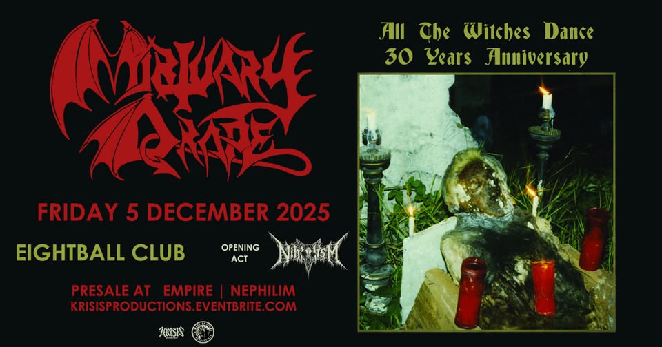 Έχοντας συμπληρώσει 30 χρόνια από την κυκλοφορία του ντεμπούτου Album τους, οι Ιταλοί πρωτοστάτες του Ritual/Occult Black Metal θα δώσουν μερικές επιλεγμένες συναυλίες, στις οποίες εκτός του ότι θα το παρουσιάσουν ολόκληρο, θα μείνουν στην σκηνή για μιάμιση ώρα σε μία “τελετή” άνευ προηγουμένου!Ένα χρόνο μετά την πρώτη τους εμφάνιση, στην οποία γίναμε μάρτυρες μίας ωμής, αρχέγονης, αληθινής on the face black metal εμφάνισης, οι Mortuary Drape επιστρέφουν για ένα μοναδικό επετειακό Setlist.