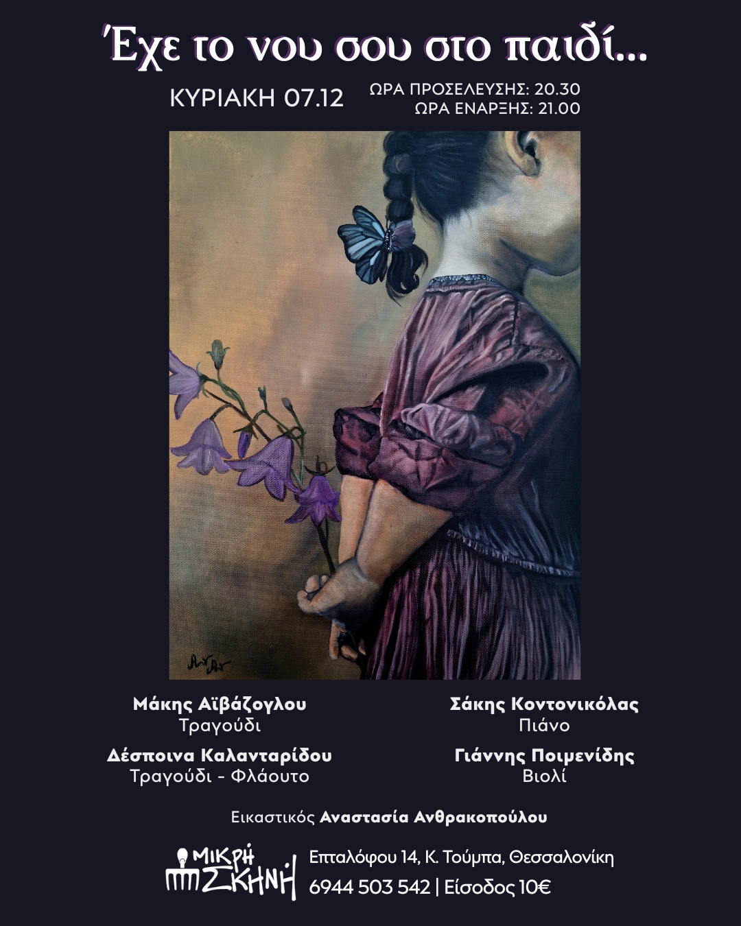 Κυριακή 7 Δεκεμβρίου 2025 | Μικρή Σκηνή (Επταλόφου 14, Κάτω Τούμπα) | Ώρα έναρξης: 21:00 | Είσοδος: 10 € | Πληροφορίες-Κρατήσεις: 6944503542