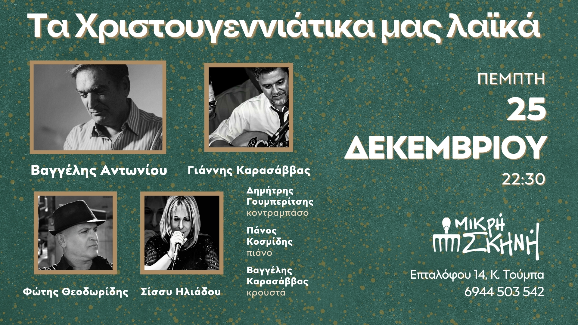 Τα Χριστούγεννα θα γιορτάσουμε όλοι μαζί στη Μικρή Σκηνή με ένα καταπληκτικό λαϊκό πρόγραμμα!