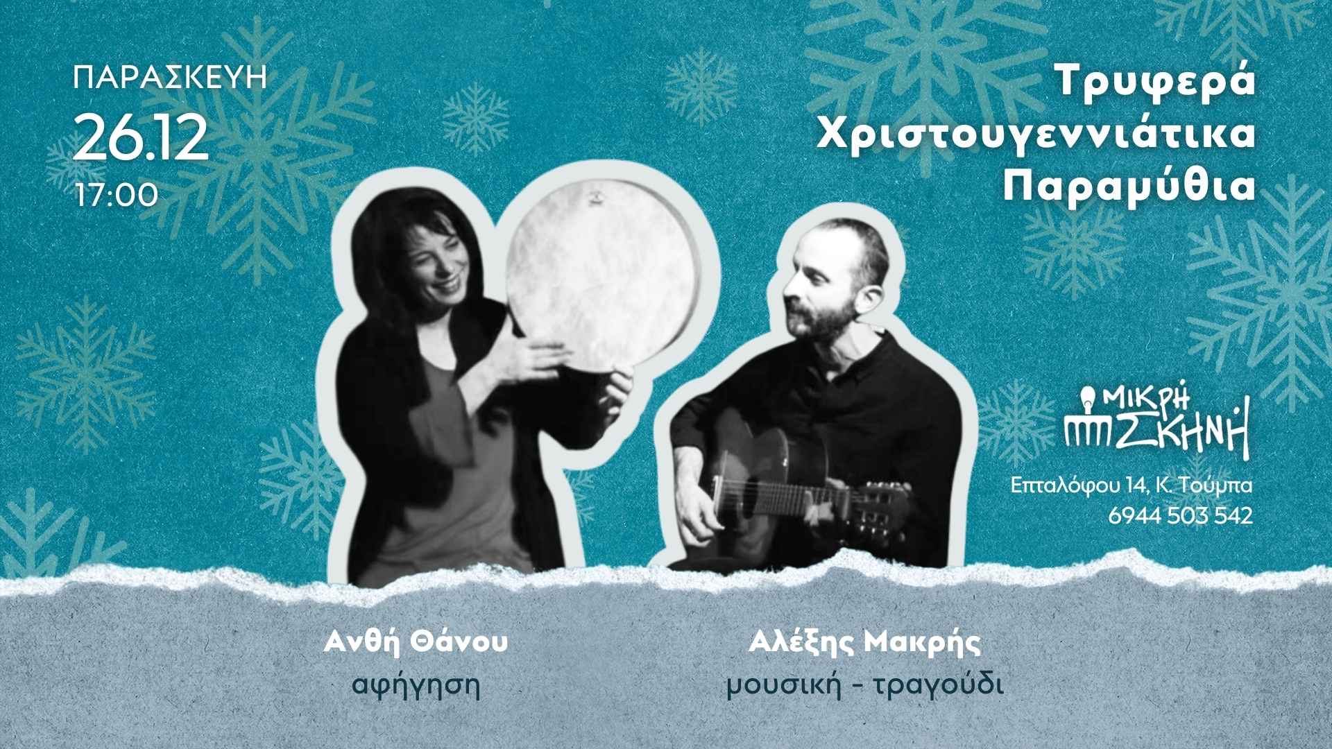 Παρασκευή 26 Δεκεμβρίου 2025 | Μικρή Σκηνή (Επταλόφου 14, Κάτω Τούμπα) | Ώρα έναρξης: 17:00 | Είσοδος: 8€ | Πληροφορίες-Κρατήσεις: 6944503542