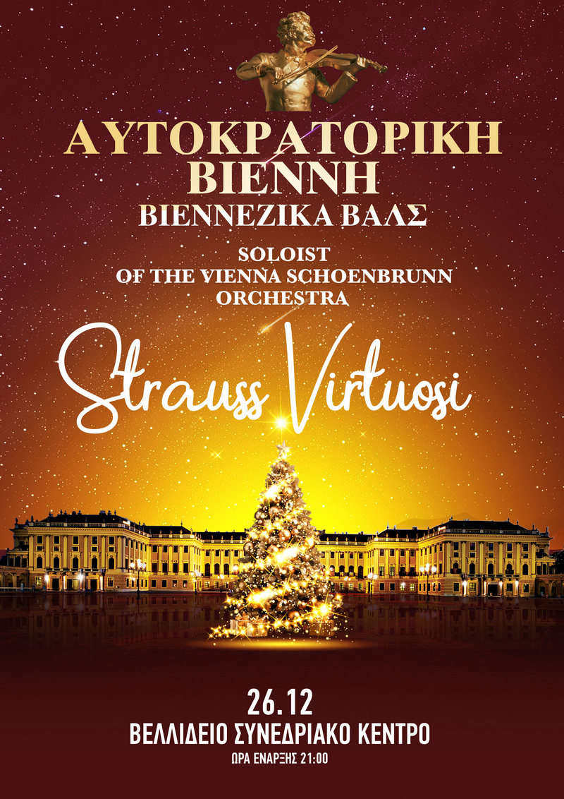 Οι Johann Strauss Virtuosi, επίλεκτοι μουσικοί της Ορχήστρας των Ανακτόρων Schoenbrunn της Βιέννης θα μας μεταφέρουν στην μαγική ατμόσφαιρα της Βιεννέζικης κλασικής ψυχαγωγίας.