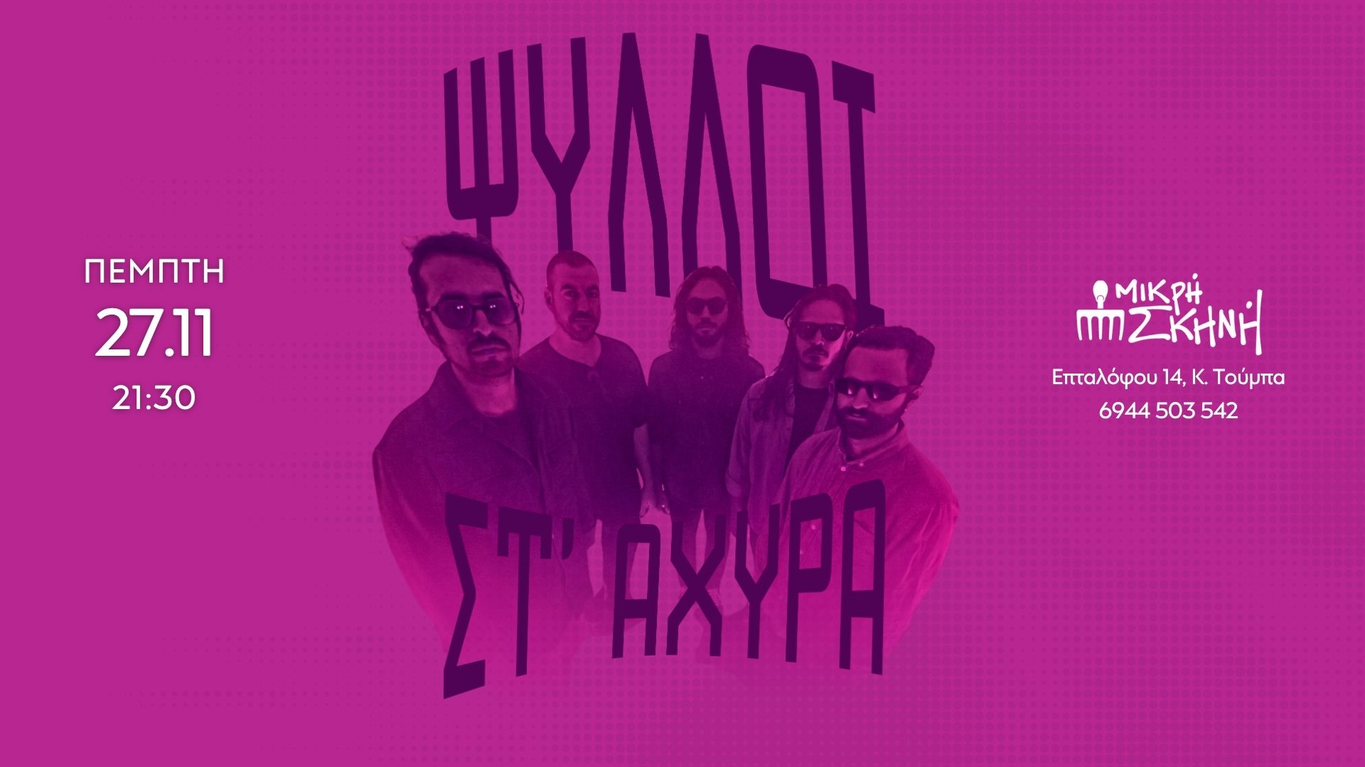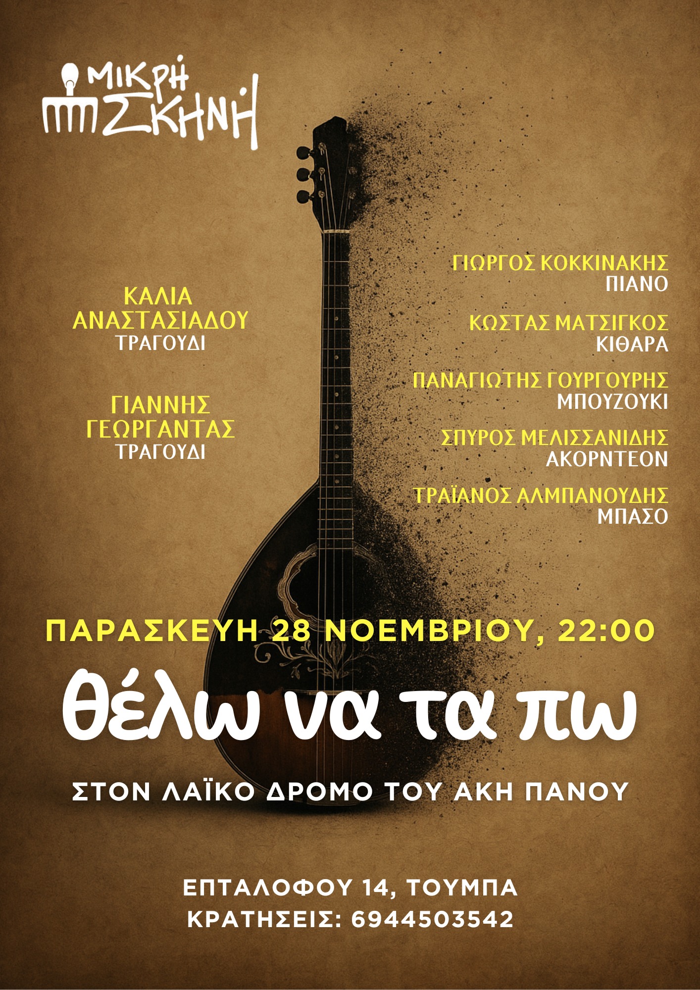 Πέμπτη 27 Νοεμβρίου 2025 | Μικρή Σκηνή (Επταλόφου 14, Κάτω Τούμπα) | Ώρα έναρξης: 21:30 | Είσοδος: 8 € | Πληροφορίες-Κρατήσεις: 6944503542