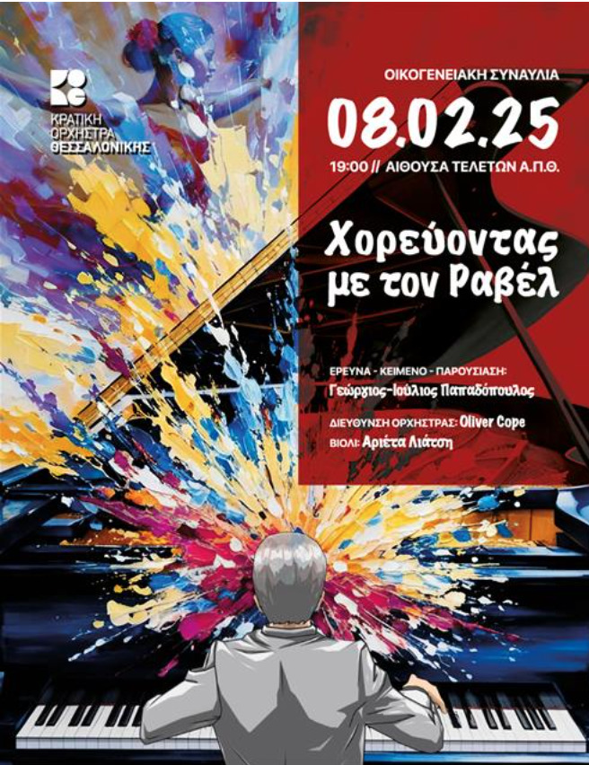 Σάββατο 8 Φεβ 2025μ Οικογενειακή Συναυλία της Κ.Ο.Θ. στην Αίθουσα Τελετών Α.Π.Θ.: «Χορεύοντας με τον Ραβέλ» Αίθουσα Τελετών ΑΠΘ, Τηλ:2310 257900/ Εισιτήρια- Τιμές εισιτηρίων: από 5€ – 10€/ Προπώληση: tickets.tsso.gr